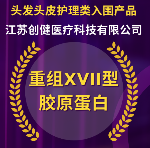 江蘇創(chuàng)健醫(yī)療科技有限公司的“重組XVII型膠原”在入圍的28家企業(yè)(產(chǎn)品)中脫穎而出,榮獲2022PCHi芳典獎(jiǎng)?lì)^發(fā)和頭皮護(hù)理類原料創(chuàng)新獎(jiǎng)!